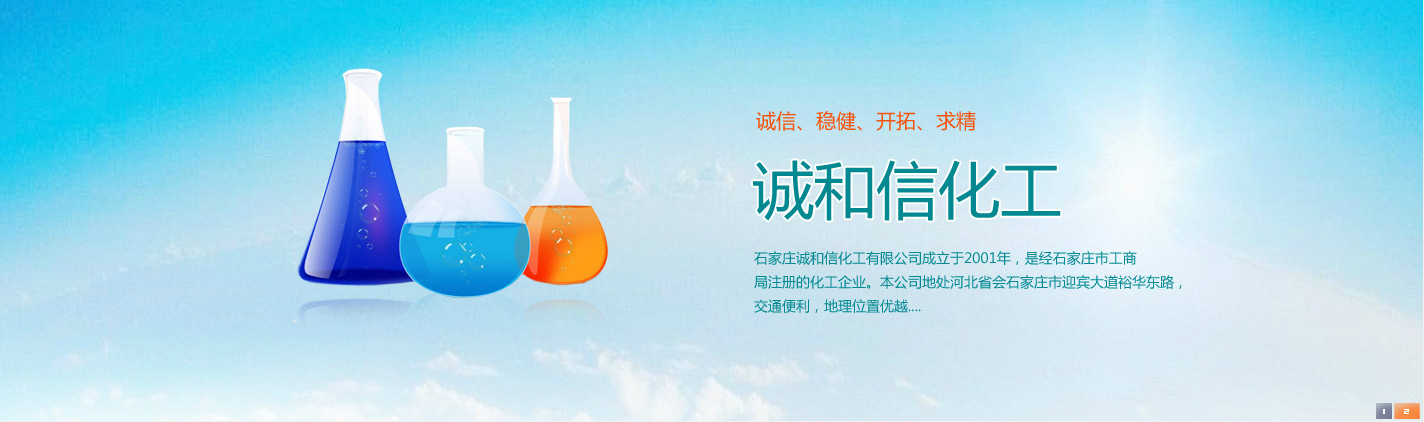 石家莊誠和信化工有限公司成立于2001年,是經(jīng)石家莊市工商 局注冊(cè)的化工企業(yè)。本公司地處河 北省會(huì)石家莊市迎賓大道裕華東路 ,交通便利,地理位置優(yōu)越。公司 主要產(chǎn)品....詳細(xì)>>